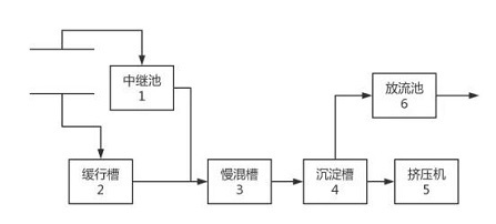 化學(xué)沉淀法除氟技術(shù)是工程上常用的工藝之一,脫硫廢水經(jīng)中繼池和緩行槽后依次進(jìn)入慢混槽和沉淀槽,由沉淀槽排除沉淀污泥進(jìn)入擠壓機(jī)處理,分流處理液引入放流池后外排。
