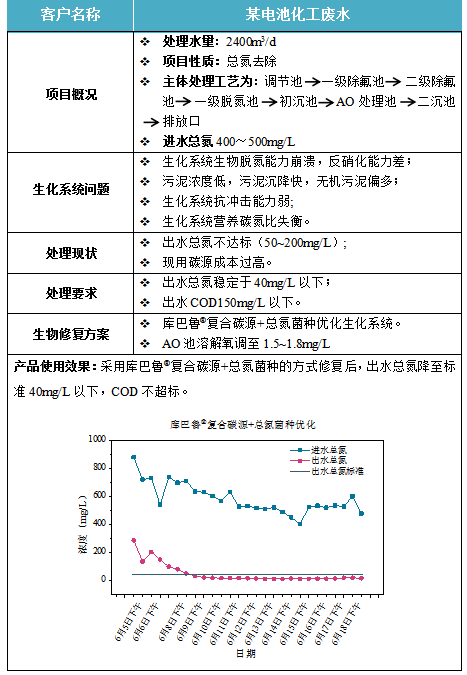 由于這類(lèi)廢水水質(zhì)的特點(diǎn),廢水主要問(wèn)題常常是C/N比例失常,氨氮、總氮濃度較高,以及存在一定的重金屬污染,廢水具有一定的可生化性,但可生化性通常不高(B/C低),因此投加碳源,并選用處理能力強(qiáng)的特效菌種來(lái)改善水的可生化性就顯得尤為關(guān)鍵。