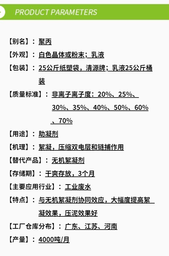 一、非離子聚丙烯酰胺性能